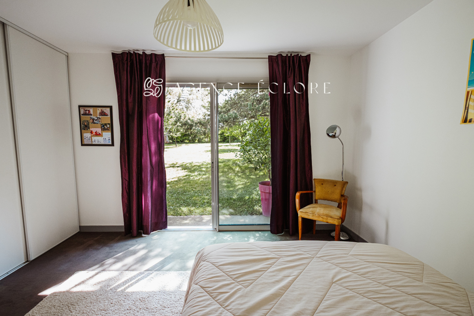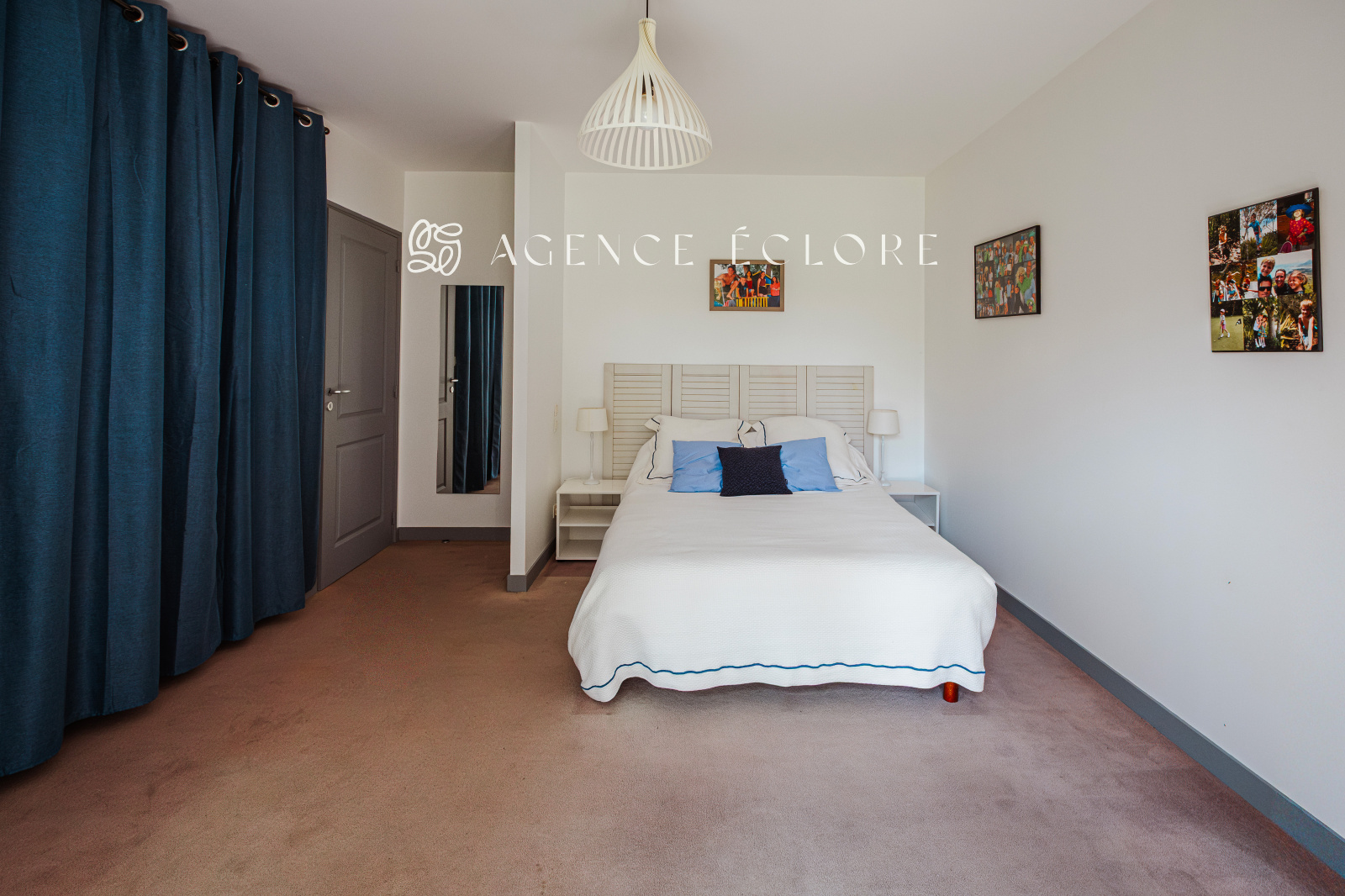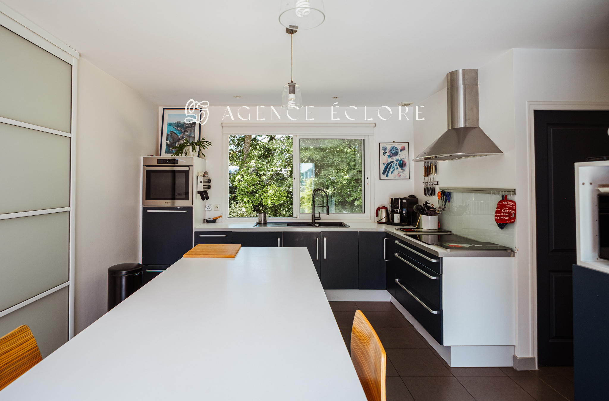 L’entrée dispose d’un dressing et d’un wc séparé. La pièce de vie conviviale bénéficie d’une cheminée à foyer ouvert dans l’espace salon et d’un espace séjour séparé de la cuisine équipée par une cloison amovible, permettant de moduler l’espace au gré des envies.Une buanderie et un bureau pouvant faire office de 4ème chambre permettent l’accès à l’extérieur.